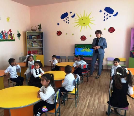 It should be noted that about 25 children aged 5 are included in the preschools, which are operating in Taperakan and Urtsadzor secondary schools. Preschools work on a 5-day working schedule. The representatives of the CEP PIU summed up the visit in Vedi N2 basic school. In the above-mentioned school the preschool was established for 20 children, but due to the increase in the number of children attending it later, it was licensed for 40 children. The actual number of attending children is 40. The preschool operates in two groups with a 5-day working schedule. The lesson process was quite active with the direct participation of the children. All four preschools within the framework of project were equipped with modern furniture and equipment, as well as educational materials and toys. In all preschools, the work of the tutor is carried out by the tutor trained within the program. The sanitary and hygienic requirements approved by the RA Ministry of Health are observed in the preschools. It should be added that preschools have adapted conditions.