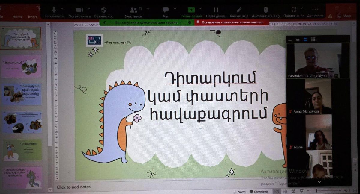 In the framework of the sub-component, "Promoting School Readiness and Equal Opportunities at the Start of General Education", the results of distance trainings of the teachers and directors of selected institutions involved in the newly established preschools have been summarized. On July 24, 2023, the Center for Education Projects PIU, as a result of the announced tender, signed a contract with “Step by Step” Benevolent Foundation to conduct online trainings for the teachers of the newly established preschools and directors of selected institutions. During the months of August-September, "Step by Step" Benevolent Foundation supported school directors and teachers of the newly established preschools to acquire the necessary knowledge and skills to work with 4-6 year old children at preschools. "Step by Step" Benevolent Foundation also provided relevant materials, programs and consultations.