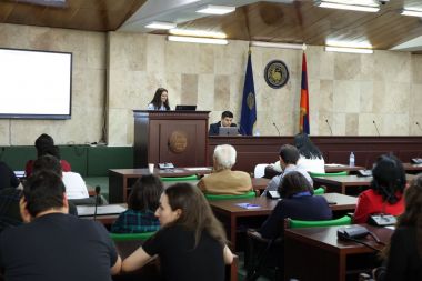 YSU Rector Hovhannes Hovhannisyan, highlighting the importance of organizing such a scientific gathering, stated: "This is the second consecutive year that this conference is being held, providing an excellent opportunity to discuss the work and achievements of YSU research centers, institutes, and laboratories. Within the framework of the "Reporting Conference-2025", researchers of the Center for Optical Microsystems Tatevik Sarukhanyan and Vahram Grigoryan presented their current research conducted at the center. It should be noted that the center is being established within the framework of the " Education Improvement Project Additional Financing'' (EIP AF) loan project. Tatevik Sarukhanyan presented her research based on two-photon polymerization, demonstrating the creation of ultra-thin structures approximately 200 nanometers in size. This approach has potential applications in the design of photonic microchips and nanoscale devices. Vahram Grigoryan discussed light control through Bragg reflection, showcasing methods for achieving precise control in optical systems. The conference also provides a unique opportunity to forge new connections and lay the groundwork for future cooperation. The conference will continue on May 12, 13, and 14, providing an opportunity for leading scientists and researchers to present the results of their research studies, activity directions, and visions.