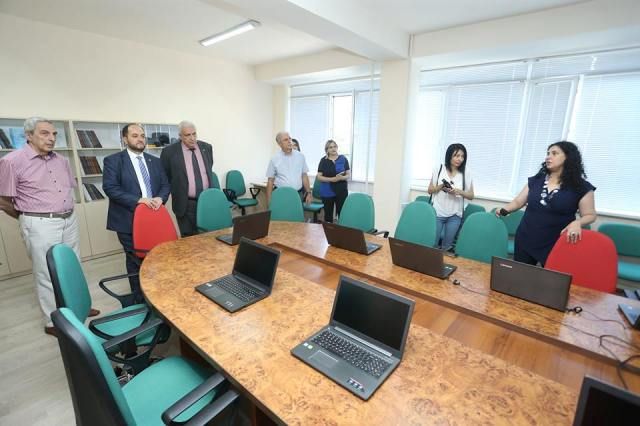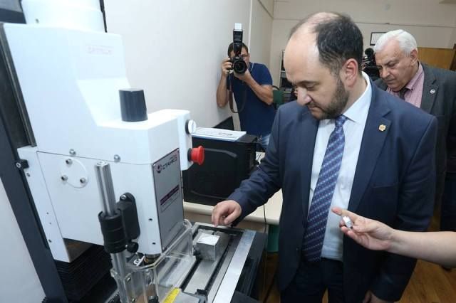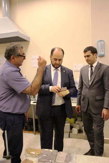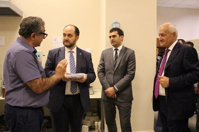 Այնուհետև ՀՀ ԿԳ նախարարը Ճարտարապետության և շինարարության Հայաստանի ազգային համալսարանի ռեկտոր Գագիկ Գալստյանի և բուհի ղեկավար կազմի այլ ներկայացուցիչների ուղեկցությամբ շրջել է ՃՇՀԱՀ ավելի քան մեկ տասնյակ լաբորատորիաներում: Այցի ընթացքում նախարարը ծանոթացել է ՆՄՀ շրջանակներում Ճարտարապետական և շինարարական մասնագիտությունների ուսումնագիտափորձարարական լաբորատորիայի աշխատանքներին: Նշենք, որ այն ստեղծվել է <<Կրթության բարելավում>> վարկային ծրագրի շրջանակներում, որի համատեքստում համալսարանը <<Կրթական ծրագրերի կենտրոն>> ԾԻԳ-ի աջակցությամբ հիմնել է լաբորատոր բազա: ՀՀ ԿԳ նախարարը շրջայցը սկսել է <<Շինարարական նյութերի և պատրաստվածքների ուսումնագիտահետազոտական լաբորատորիայից>>, որտեղ Շինարարական նյութերի, պատրաստվածքների և կոնստրուկցիաների արտադրության տեխնոլոգիայի ամբիոնի վարիչ Ա. Արզումանյանը ներկայացրել է դրամաշնորհային ծրագրի արդյունքում ձեռք բերված ժամանակակից սարքավորումների միջոցով արդեն իսկ իրականացվող գիտահետազոտական աշխատանքների մանրամասները:
