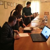 Ս. Սարգսյանը ներկայացրեց համալսարանի կայքի վերափոխման աշխատանքները, դրա հարմարեցումը հեռաուսուցման Moodle համակարգին: ԿԾԿ ԾԻԳ-ին մասնագիտական աջակցություն ցուցաբերող խորհրդատու Արշակ Ղազարյանը փորձարկեց հեռավար ուսուցման հարթակի հնարավորությունները՝ ծանոթանալով իրականացված աշխատանքներին: ԾԻԳ-ի խորհրդատուն մուտք գործեց վիրտուալ համակարգ, քննարկեց հարթակի տեղադրման և գործարկման, հեռավար դասընթացների կառուցմանն ու առցանց հաղորդակցման կանոններին առնչվող մի շարք հարցեր դրամաշնորհային ծրագրի տեխնիկական սպասարկման գծով խորհրդատուների և այլ մասնակիցների հետ: