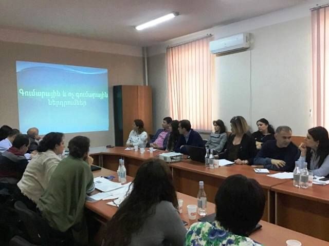 Հաջորդ օրն աշխատաժողովի մասնակիցների ուշադրության կենտրոնում ՆՄՀ դրամաշնորհային ծրագրերի գնումների և ֆինանսական ընթացակարգերի պլանավորման և կազմակերպման առնձնահատկություններն էին: Հանդիպման ավարտին քննարկում ծավալվեց նաև ՆՄՀ դրամաշնորհային ծրագրի հաշվետվողականության խնդրի շուրջ, ԾԻԳ-ի գլխավոր հաշվապահ Հասմիկ Հակոբյանը ներկայացրեց ՆՄՀ դրամաշնորհային ծրագրի ֆինանսական կարողությունների գնահատման և ծրագրի բյուջեի կազմման ու ներկայացման առանձնահատկությունները, ինչպես նաև պարզաբանեց դրամաշնորհառու բուհի կողմից ներկայացվող փուլային, եռամսյակային և ավարտական հաշվետվության հետ կապված որոշ հարցեր: Արդյունքում,ծավալվեց մասնագիտական քննարկում: