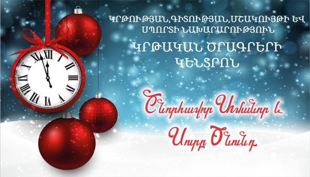 «Կրթական ծրագրերի կենտրոն» ԾԻԳ-ը շնորհավորում է Ամանորի և Սուրբ Ծննդյան տոների կապակցությամբ: